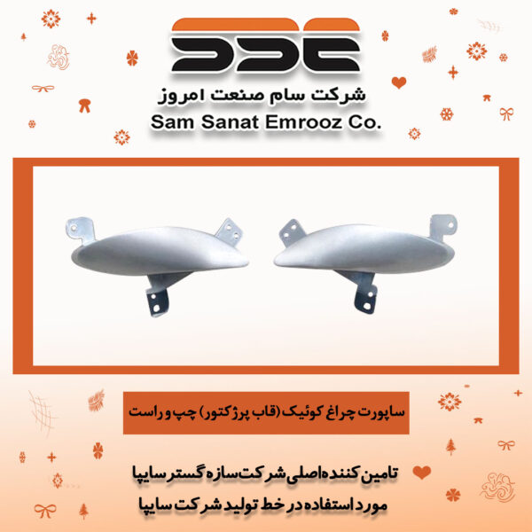 ساپورت چراغ یا قاب پروژکتور کوئیک یکی از اجزای کلیدی در سیستم روشنایی خودرو است که چراغ‌های جلو را در جای خود محکم نگه می‌دارد و از لرزش و تغییر موقعیت آنها در حین رانندگی جلوگیری می‌کند. این مجموعه شامل ۲۰ قطعه برای چپ و راست بوده و از پلاستیک فشرده و مقاوم ساخته شده تا در برابر ضربه و ارتعاش دوام بالایی داشته باشد. نصب آن کاملاً فابریک است و بدون نیاز به تغییر در سپر یا چراغ‌ها انجام می‌شود. استفاده از این ساپورت‌ها علاوه بر افزایش دوام چراغ‌ها، هماهنگی کامل چراغ با سپر و جلوپنجره را تضمین می‌کند و ظاهر جلوی خودرو را منظم و حرفه‌ای نگه می‌دارد.